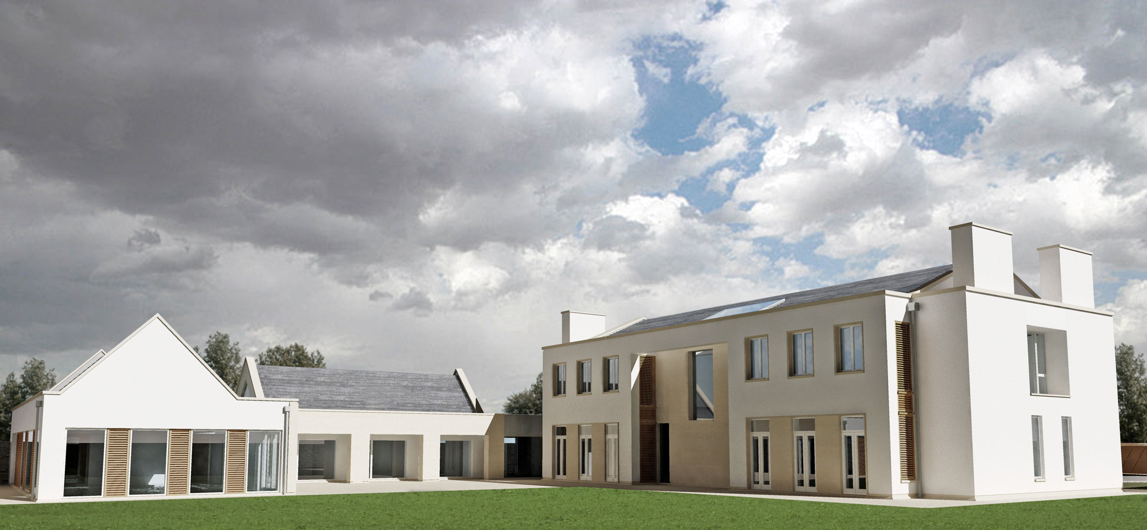 A new substantial residence situated in a rural village in South Wales where the design concept was to create a highly contemporary interpretation of a Georgian rectory sitting at the heart of the village opposite the church.