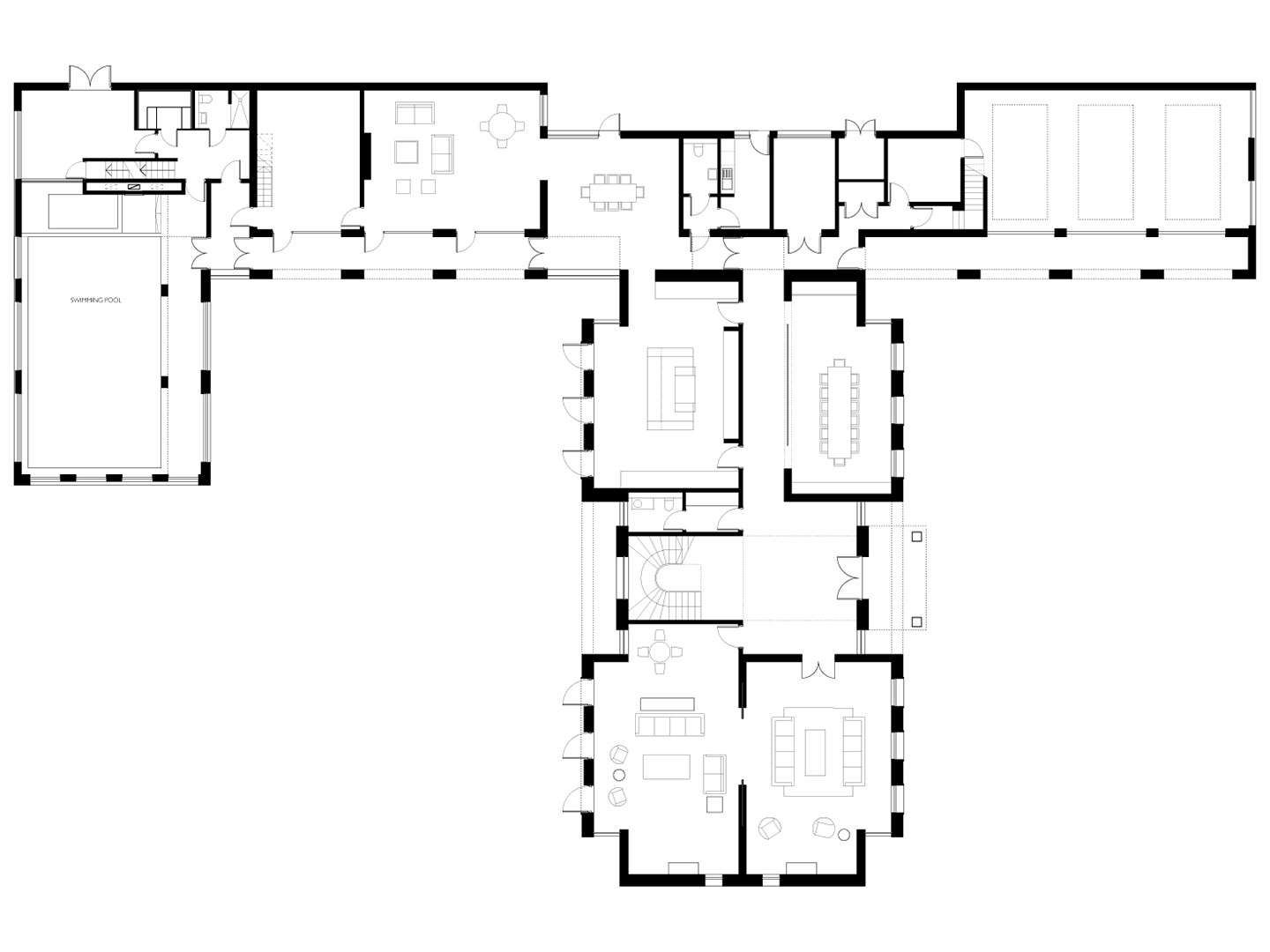 Key to the client brief was the desire to create a graceful interior that melded the classic and the contemporary and where the elegantly proportioned rooms would be orientated to optimise exposure to the path of the sun throughout the day. A dramatically spacious kitchen, quietly luxurious bathrooms and a pool complex are characterised by calming natural tones and minimalist detailing executed in materials of the highest quality.