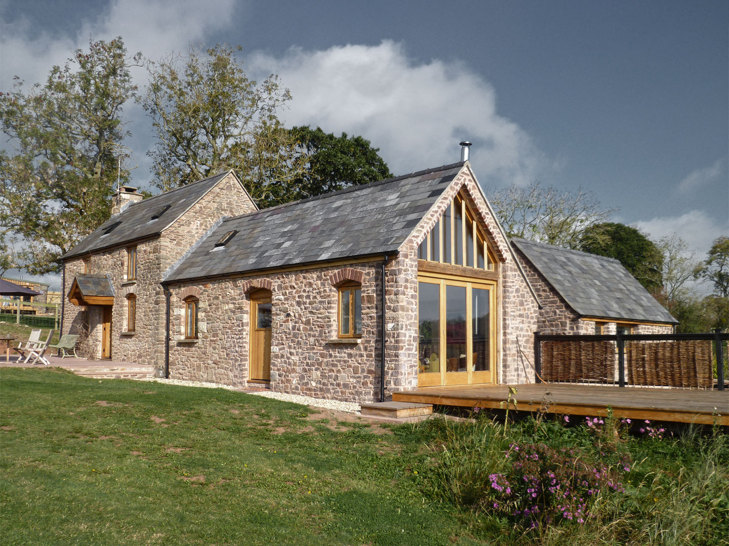 The addition of substantial extensions with contemporary interiors to a traditional stone farm cottage set in rolling countryside.